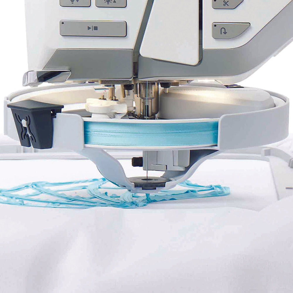 Revolutionize your embroidery projects with the Viking Ribbon Embroidery Attachment, a groundbreaking innovation in home embroidery. This optional att