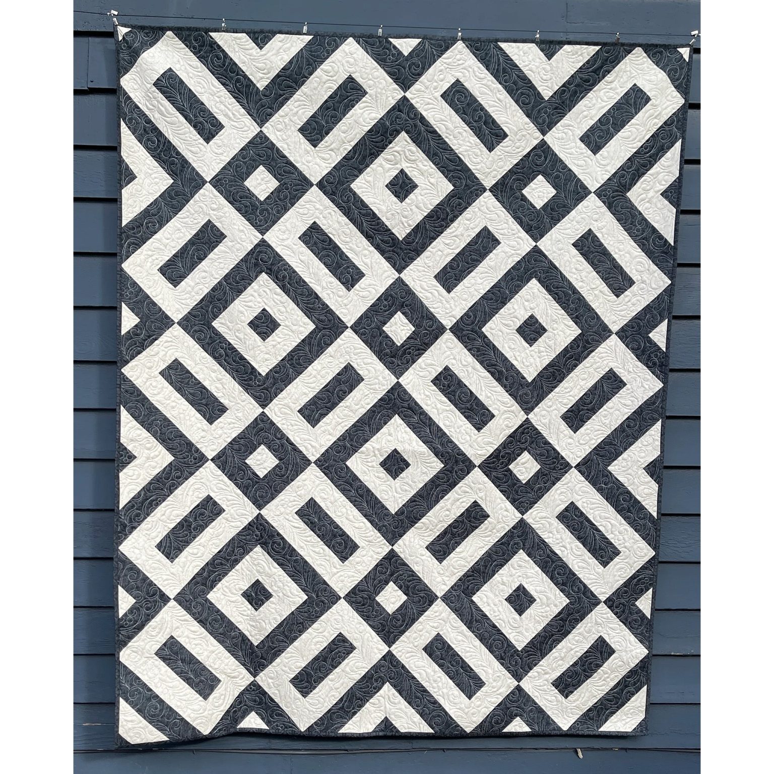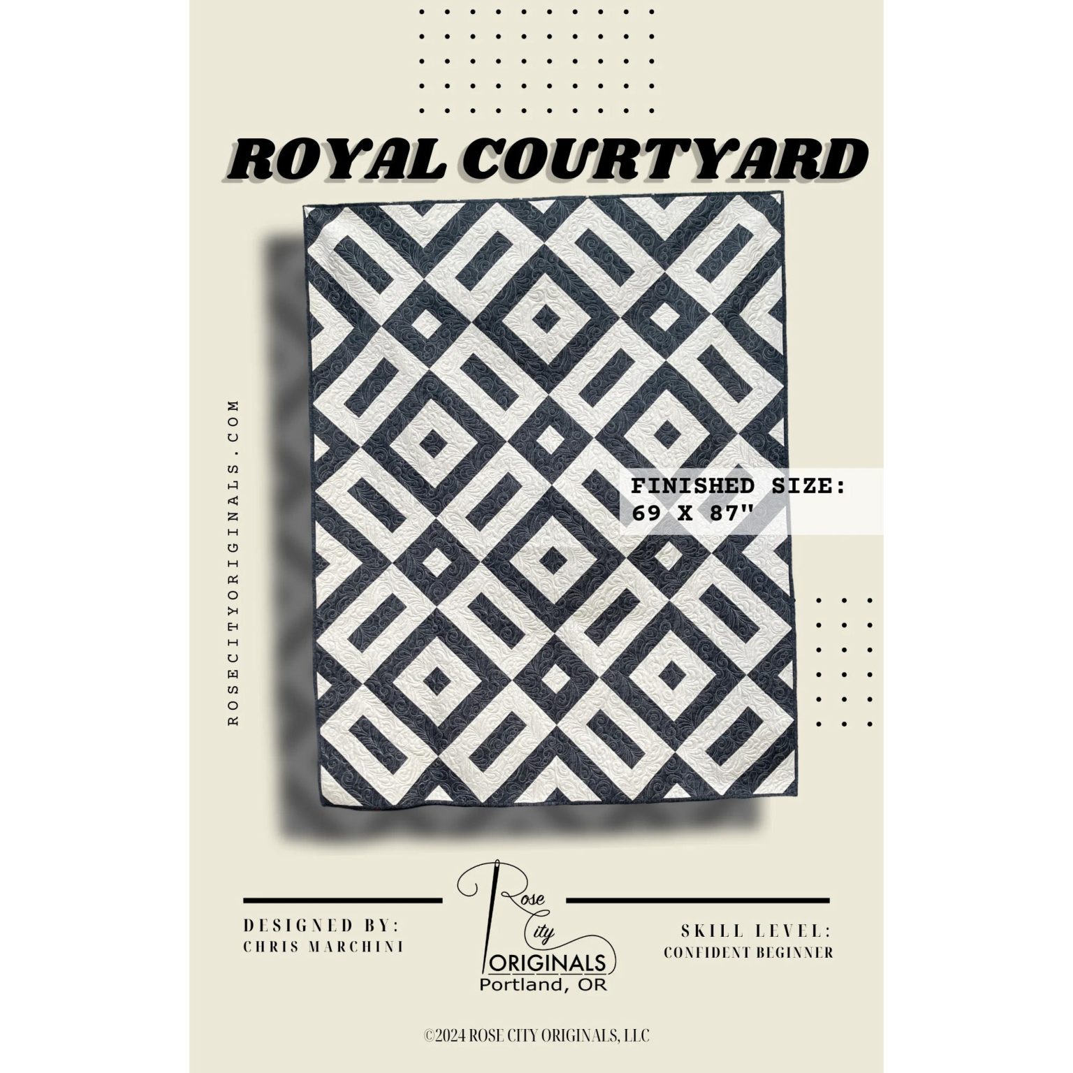 The Royal Courtyard Quilt Pattern from Chris Marchini is ideal for solids print fabrics or small prints. A confident beginner skill-level pattern, thi