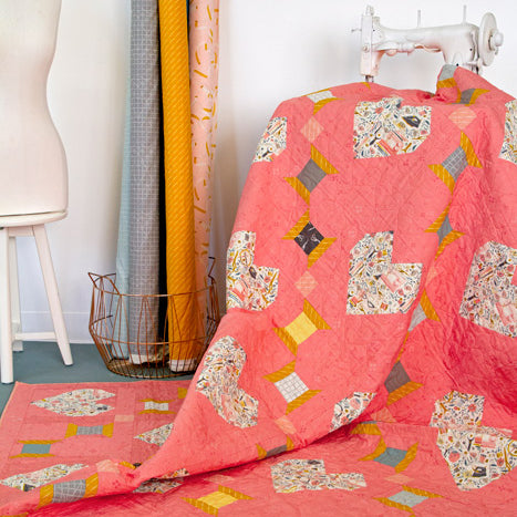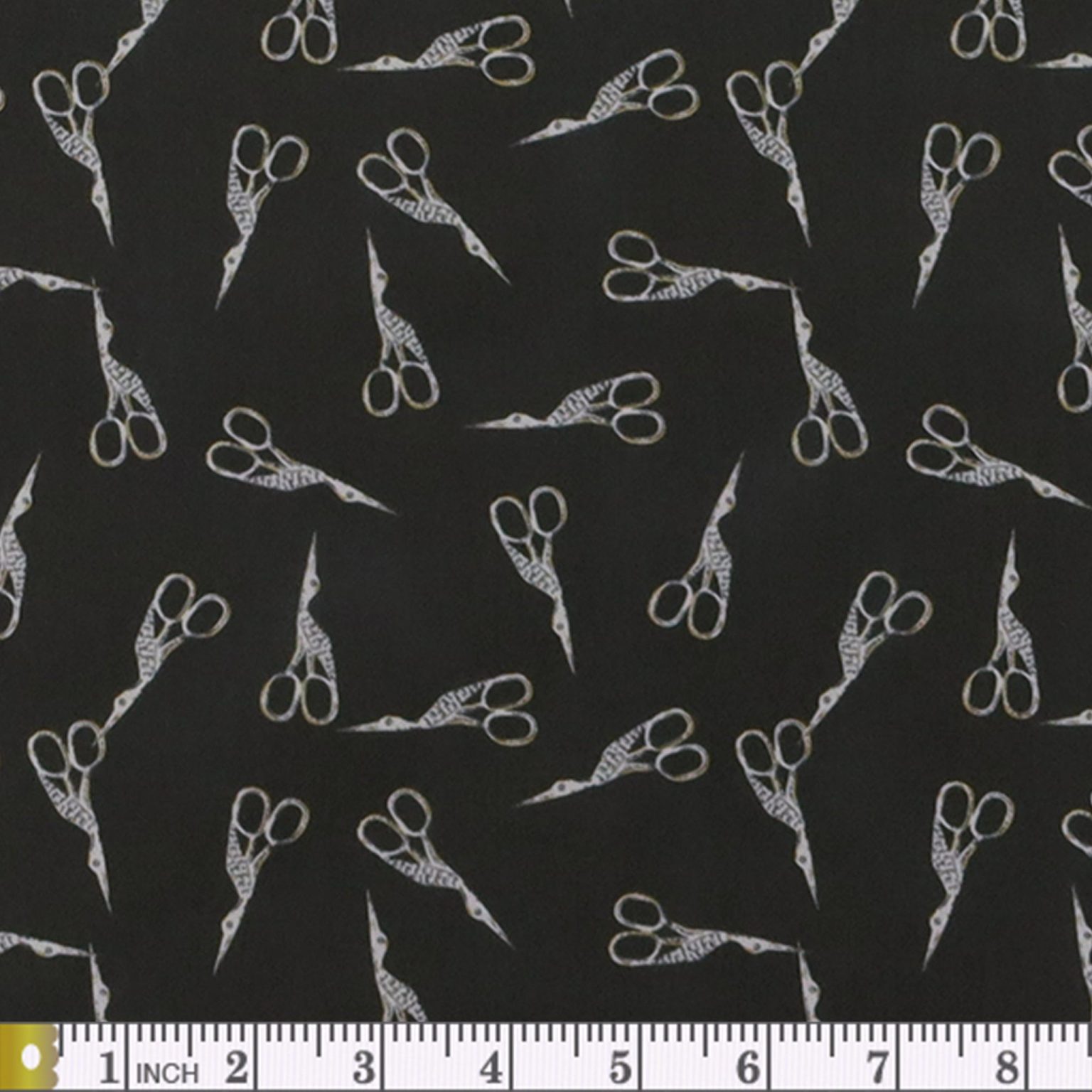 Bold and playful, Snip in Style celebrates the iconic stork scissors with a whimsical edge. Tiny ivory-colored embroidery scissors scatter across a ri
