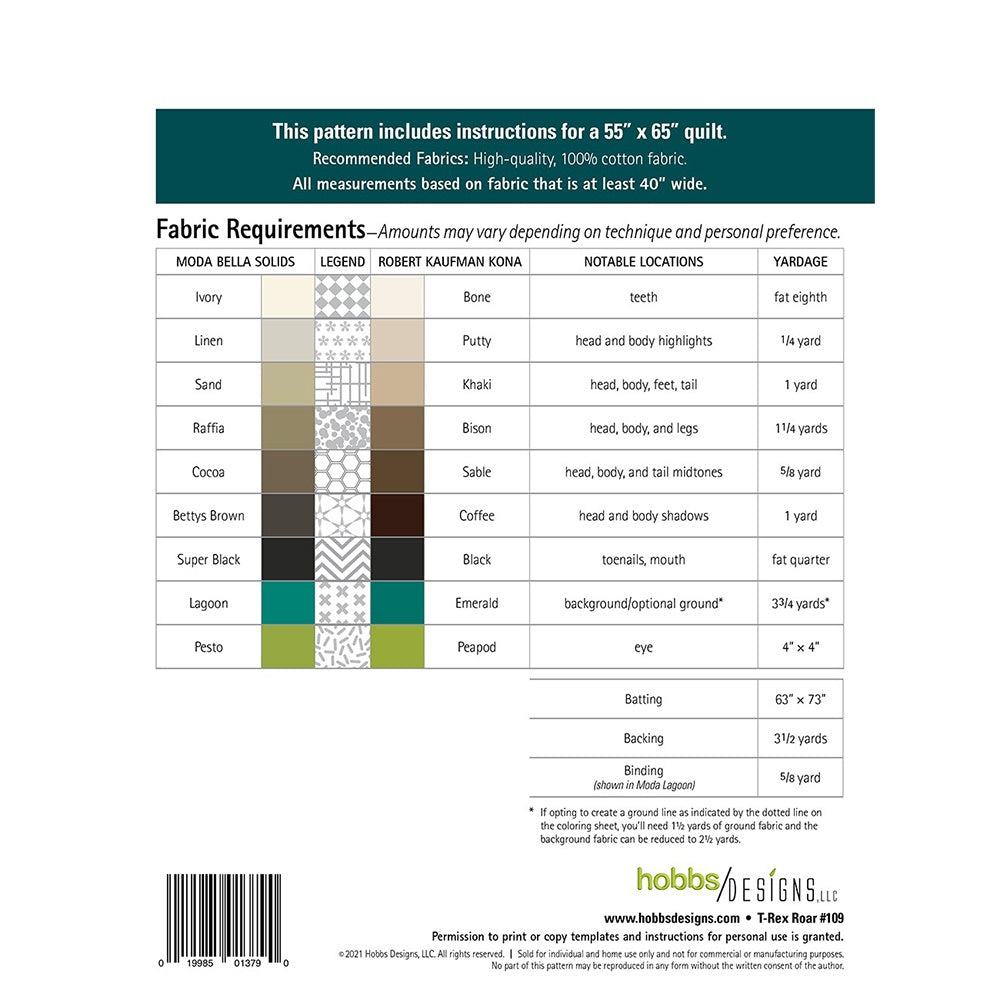 The T-Rex Roar Quilt Pattern from Hobbs Designs is the perfect project for the little paleontologist in your life. This foundation paper piecing proje