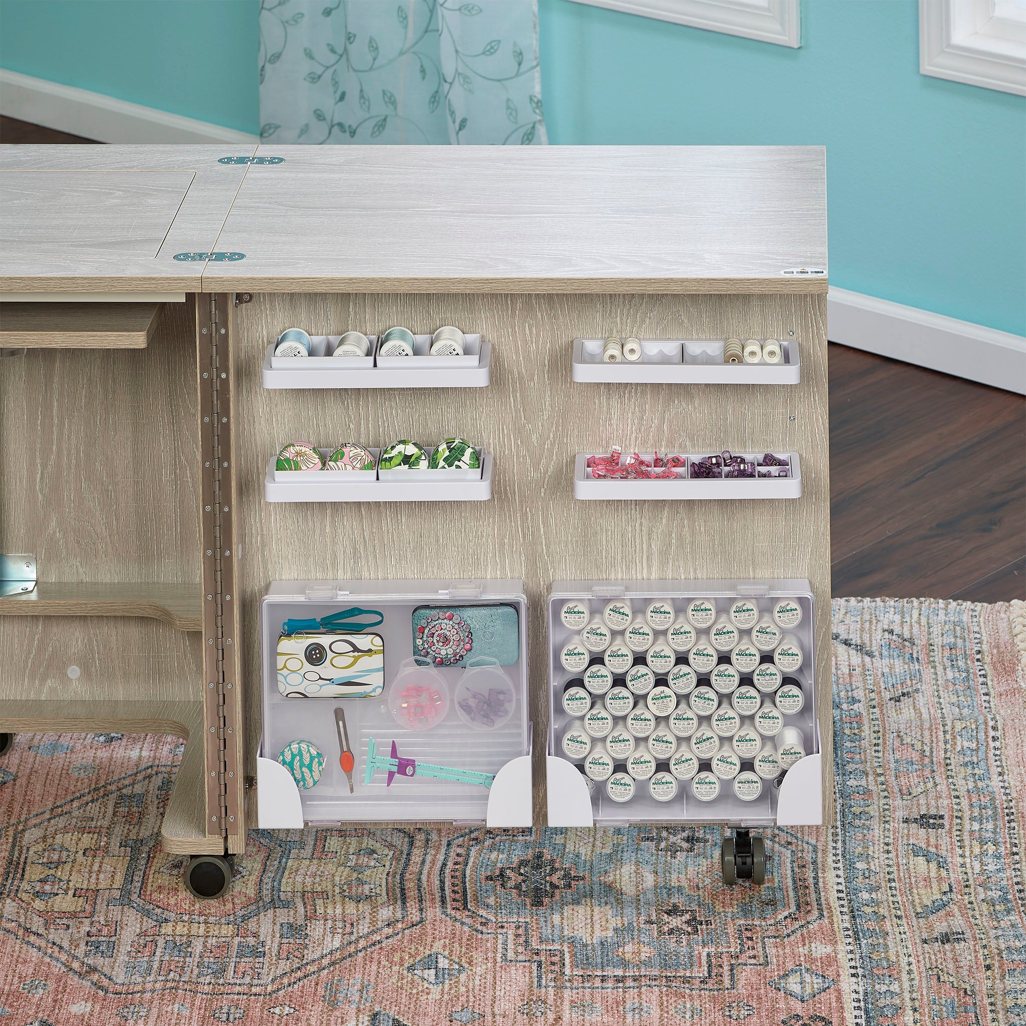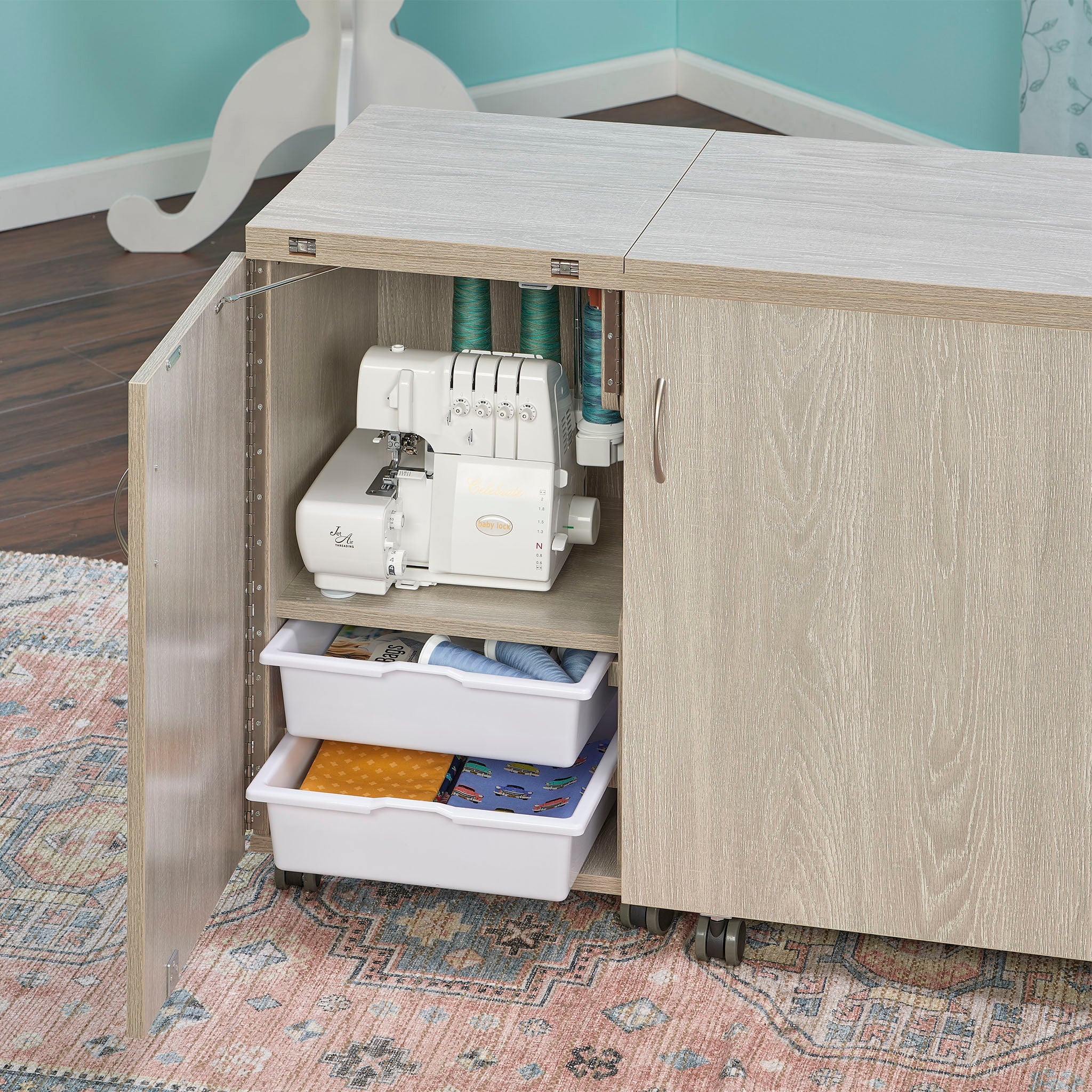 Introducing the Eclipse Sewing Cabinet from Tailormade! This full-sized cabinet was creatively designed for maximum storage in a minimal space. Featur