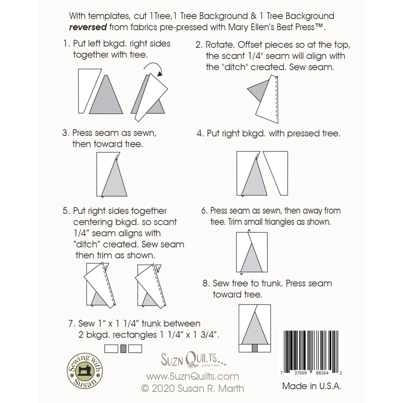 With Susan R. Martin’s Tiny Tree Pattern, you can show off your skills and decorate all in one. Cut strips, cut trees or tree backgrounds & sit to