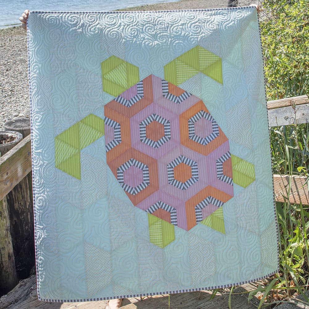 Tully The Turtle Baby Quilt by Krista Moser is playful and fun. This turtle has a lot of personality for such a little quilt, which comes out to be 40
