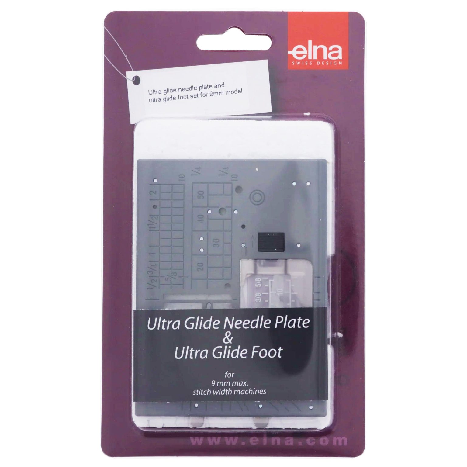 The Ultra Glide Foot permits easy sewing of fabrics that may stick to a metal foot. The Ultra GLide Needle Plate uses the same non-stick technology as