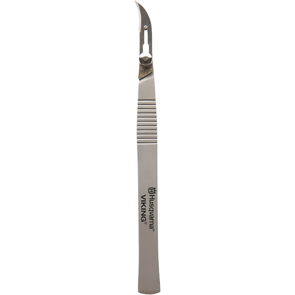 The Viking Seam Ripper is designed for precise, effortless stitch removal, featuring a sharp curved blade that easily guides through seams without dam