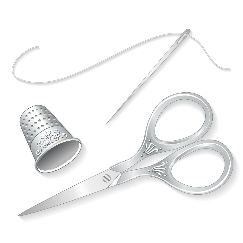 The Vintage Silver Engraved Sewing Set Fabric Panel is a part of the Sewing Fabric Collection printed by Sew Creative Fabrics. Digitally Printed on 10