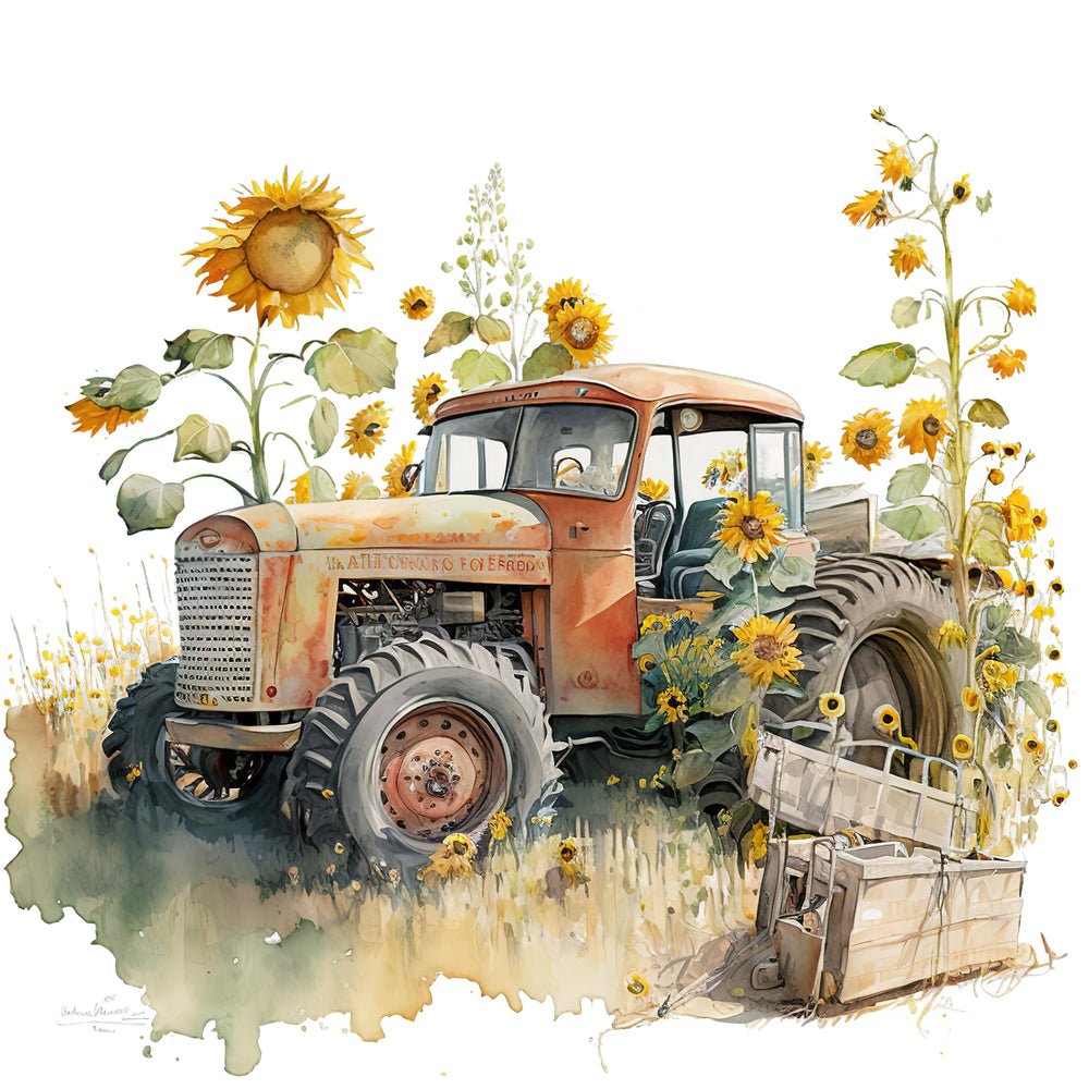 Vintage Tractor & Sunflowers #5 Fabric Panel