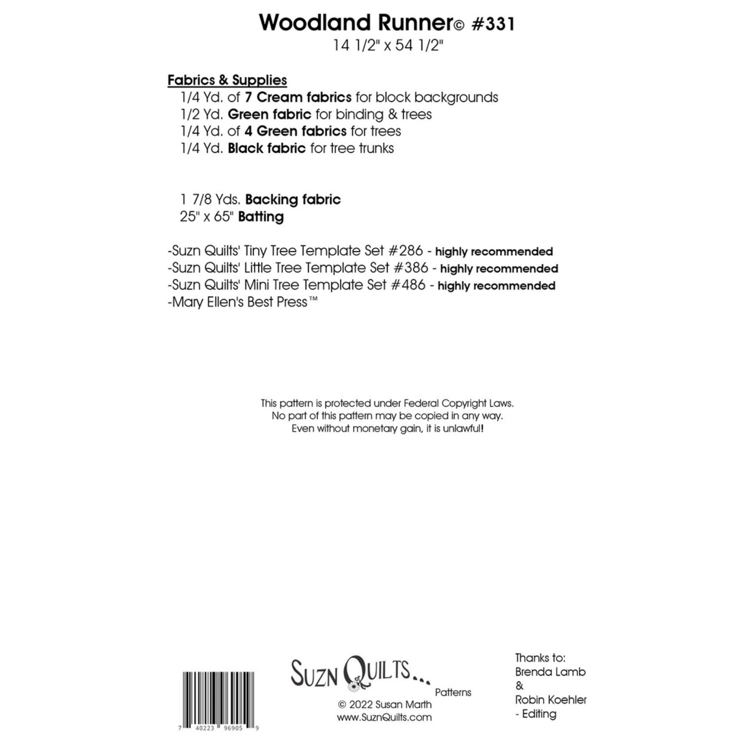 Susan Marth designed Woodland Forest Runner. This is another tree-filled, quick, and accessible pattern. With no tricky sewing or aggravating points,