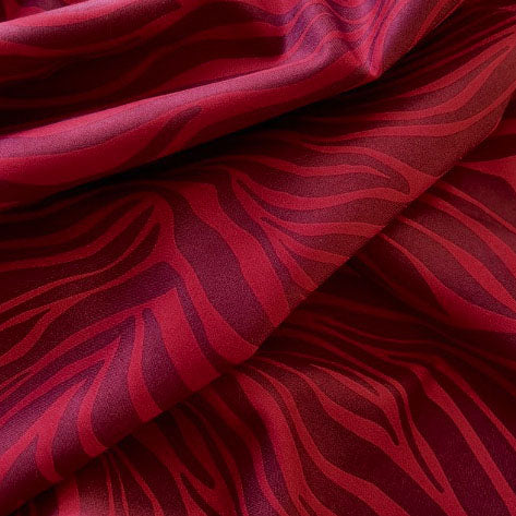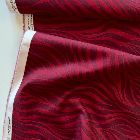 Bold, expressive, and full of wild rhythm, the Red Zebra Stripes fabric brings a striking sense of movement to any sewing project. The deep red and ri