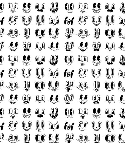 30s Retro Funny Faces Fabric – Black/White