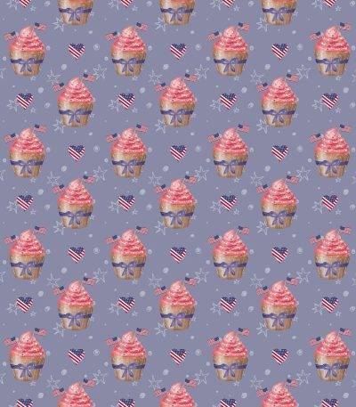 The Blue 4th of July Cupcakes Fabric is part of the 4th of July Gnomes Fabric Collection, printed by Sew Creative Fabrics. It is digitally printed on