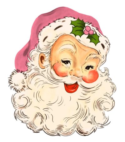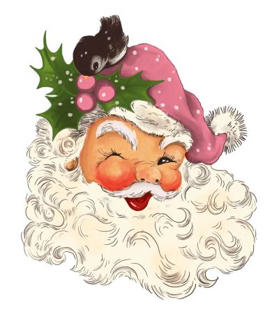 Vintage Santa Claus #4 Fabric Panel – Pink
