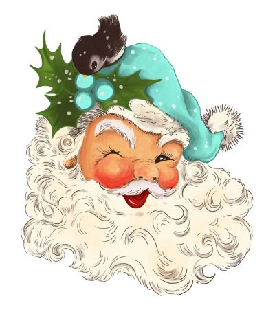 Vintage Santa Claus #1 Fabric Panel – Blue