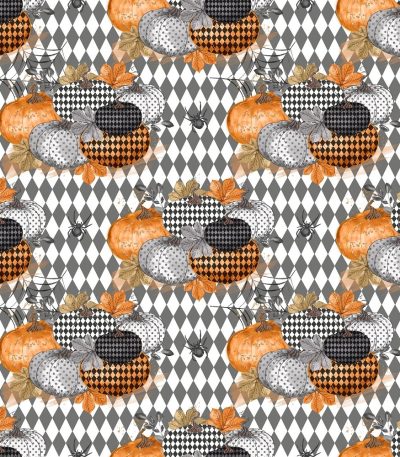 The Vintage Trick or Treat Pumpkins Checkered Fabric is part of the Vintage Trick or Treat Fabric Collection printed by Sew Creative Fabrics. Digitall
