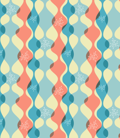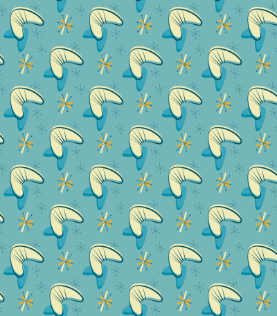 The Light Blue 1950s Atomic Pattern 4 Fabric is part of the 1950s Atomic Fabric Collection, printed by Sew Creative Fabrics. It is digitally printed o