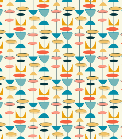 The Yellow 1950s Atomic Pattern 5 Fabric is part of the 1950s Atomic Fabric Collection, printed by Sew Creative Fabrics. It is digitally printed on 10