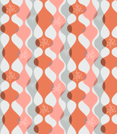 The Orange 1950s Atomic Pattern 8 Fabric is part of the 1950s Atomic Fabric Collection, printed by Sew Creative Fabrics. It is digitally printed on 10